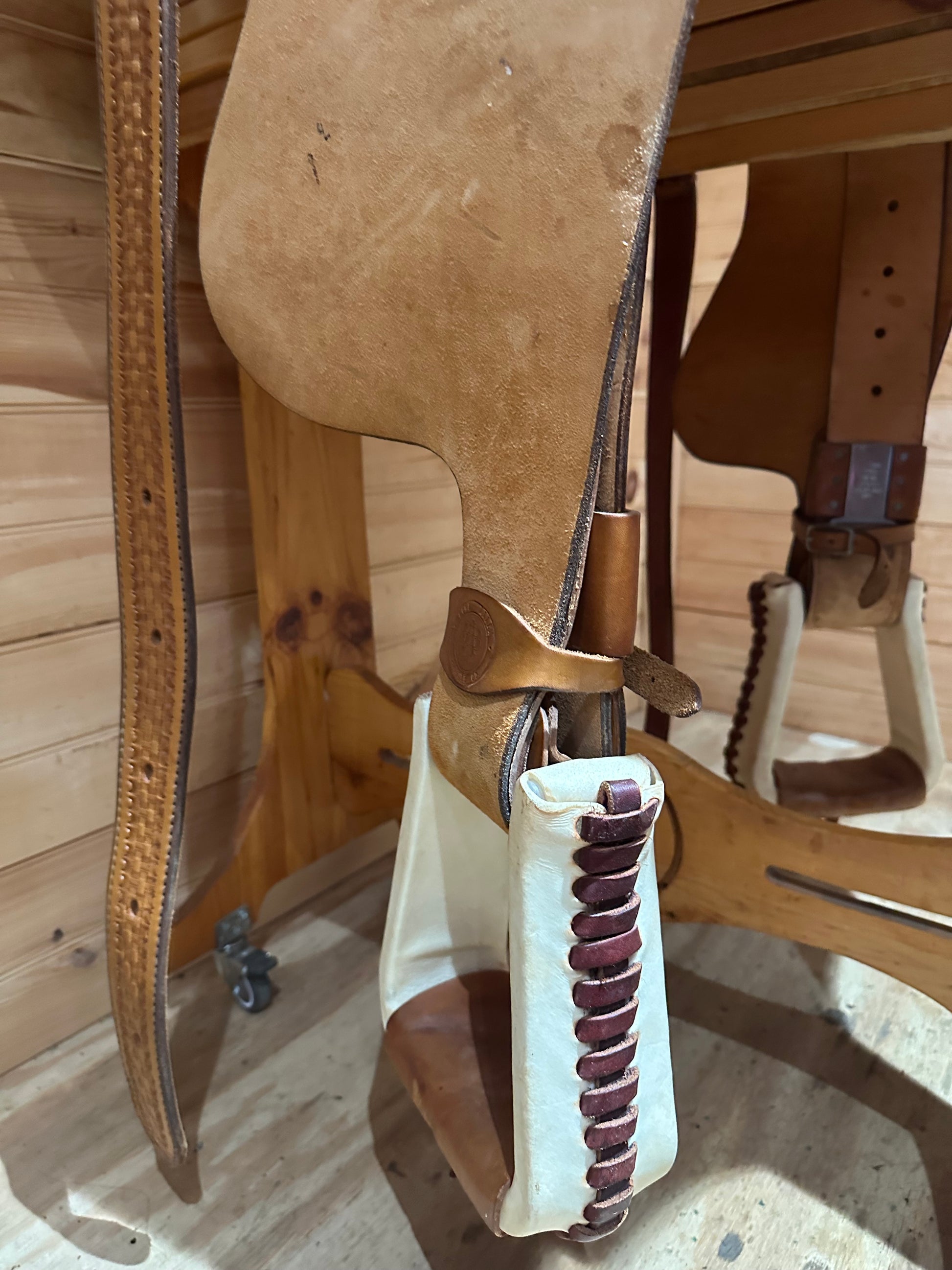 Stirrups: rawhide wrapped