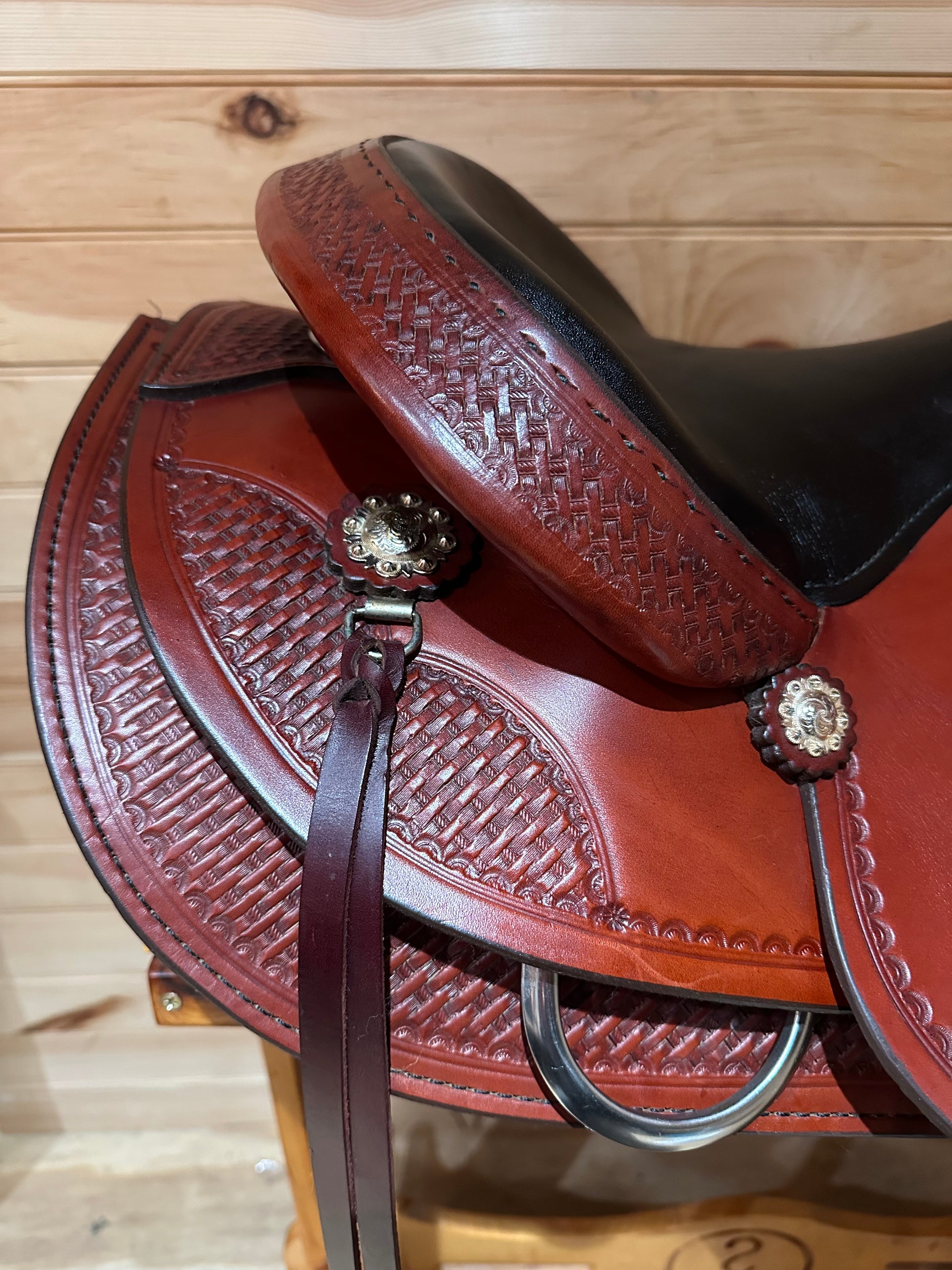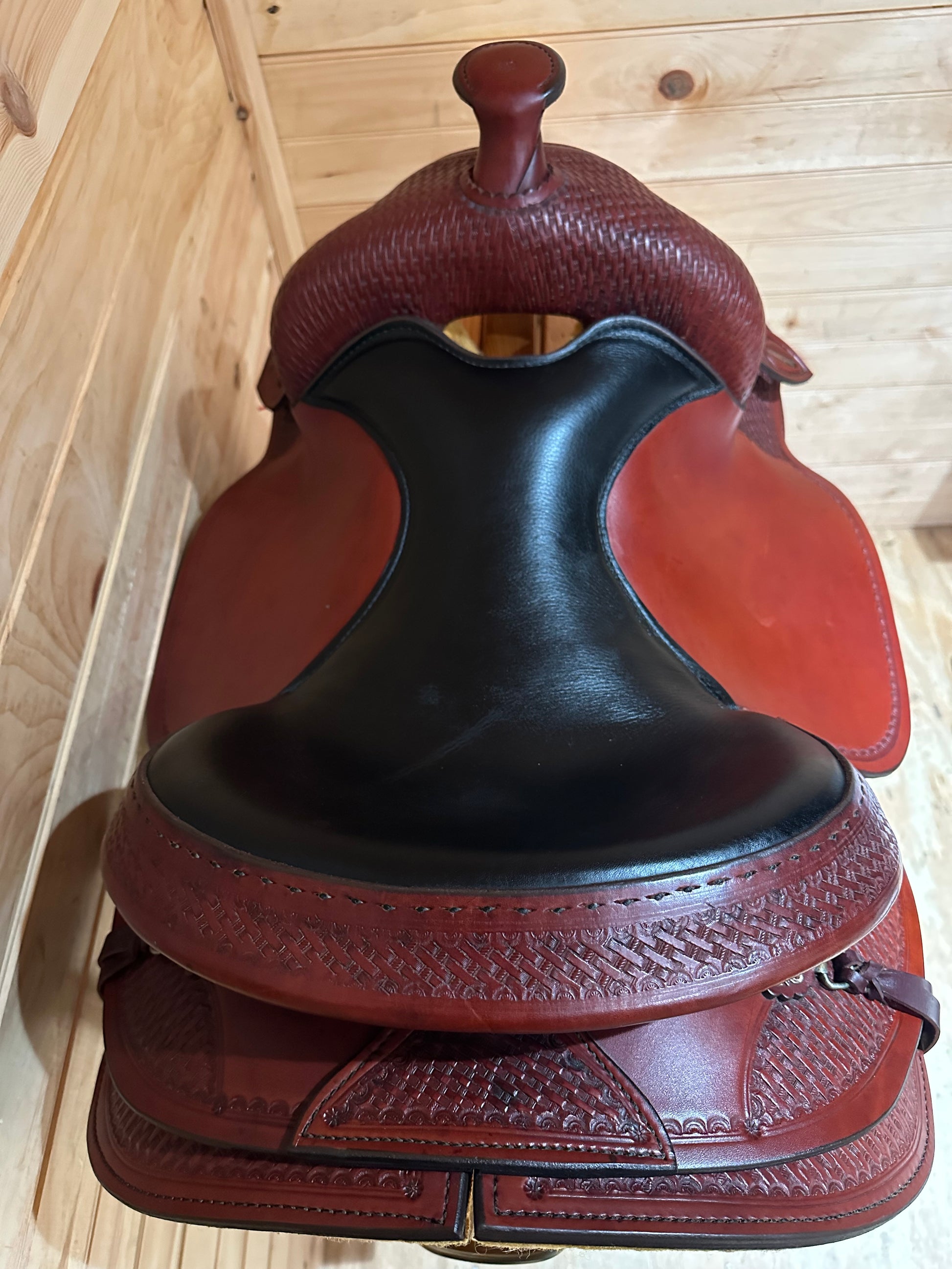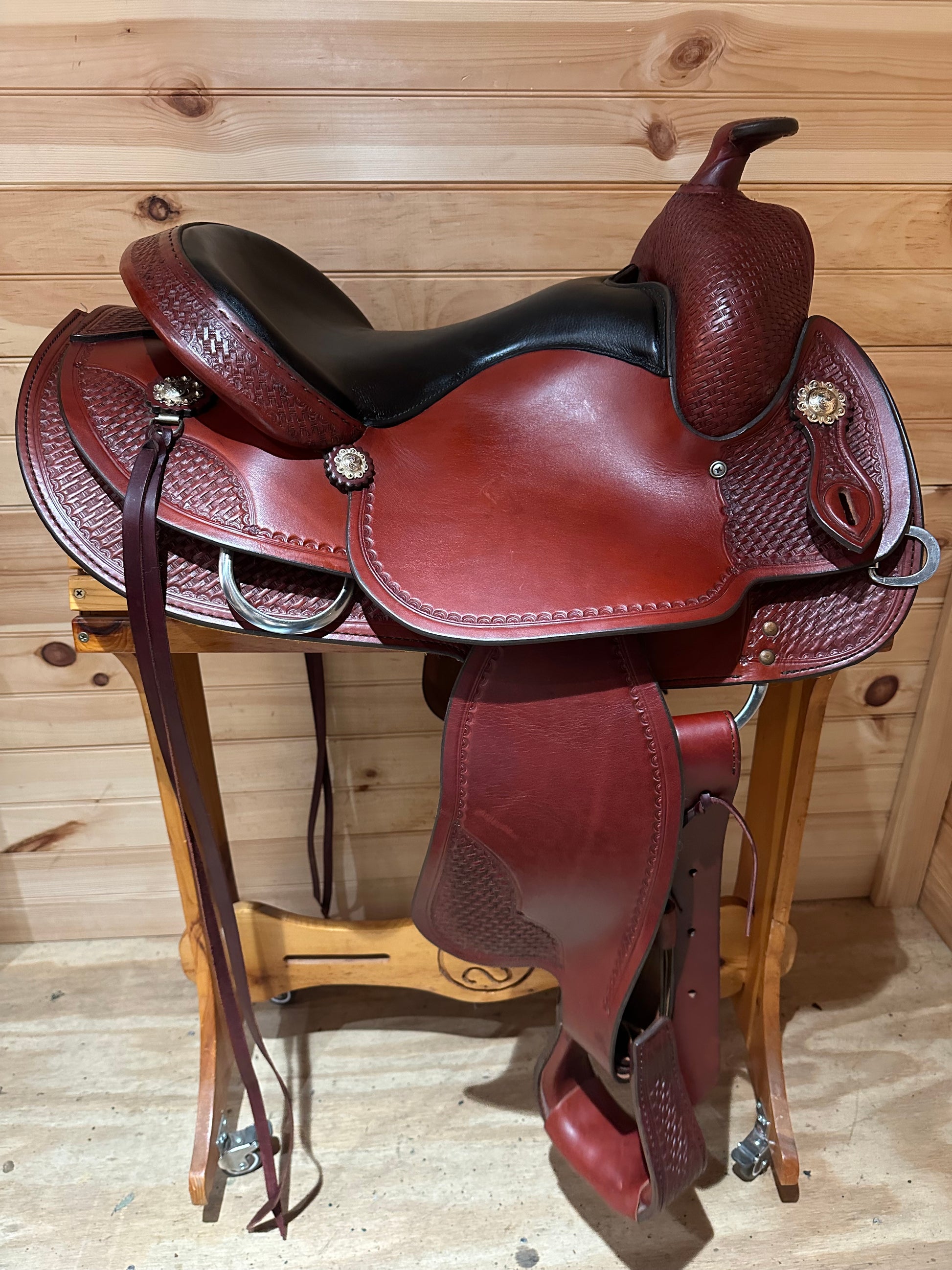 The Classic Reiner is made in a number of sizes, which include 15", 15 1/2", 16" and 17", in Quarter Horse, and 7” wide Foundation Quarter Horse width. These saddles incorporate currently popular features shorter rounded skirting, soft grain-out padded seat, corner basket tooling and Berry conchos.