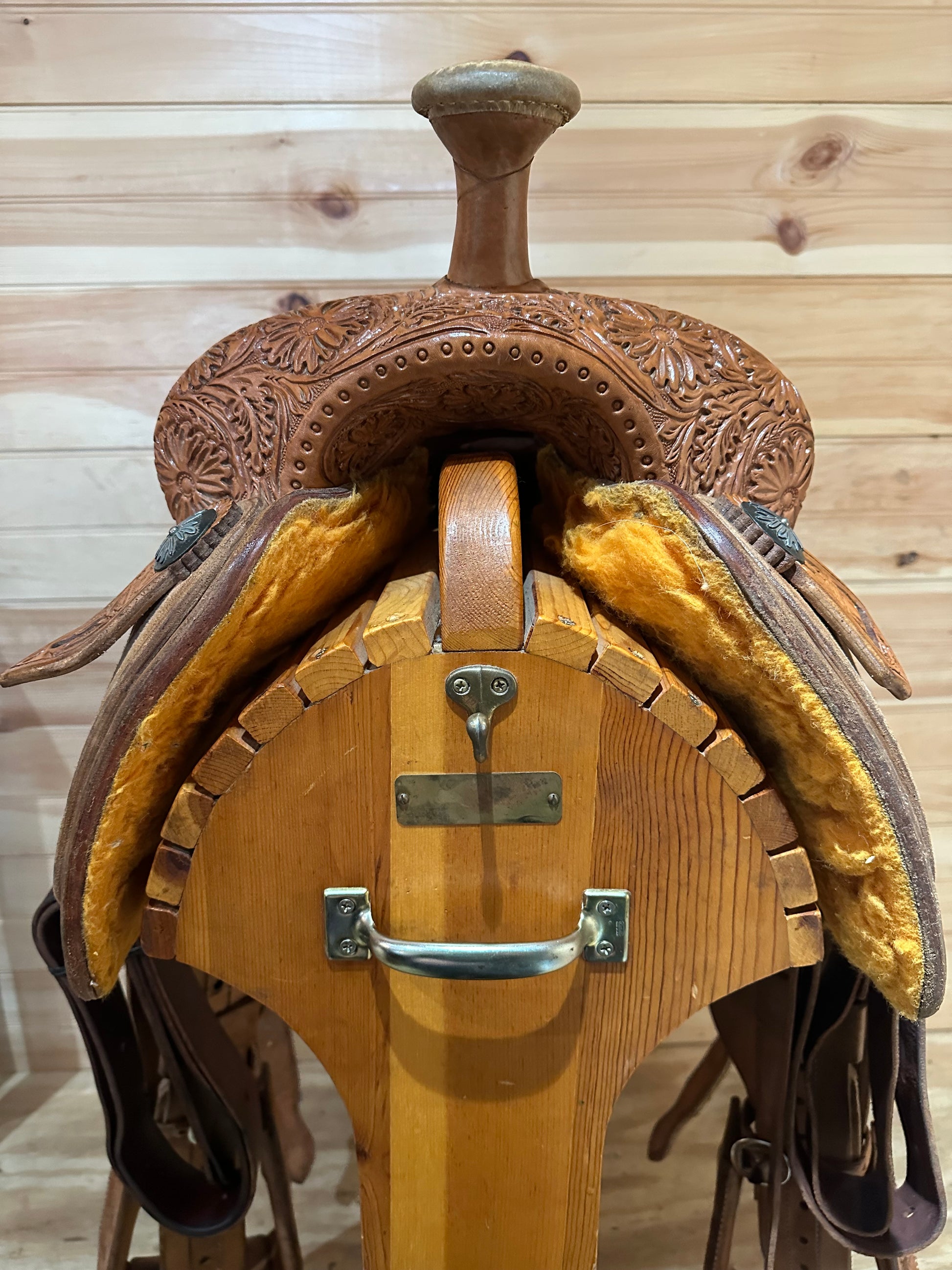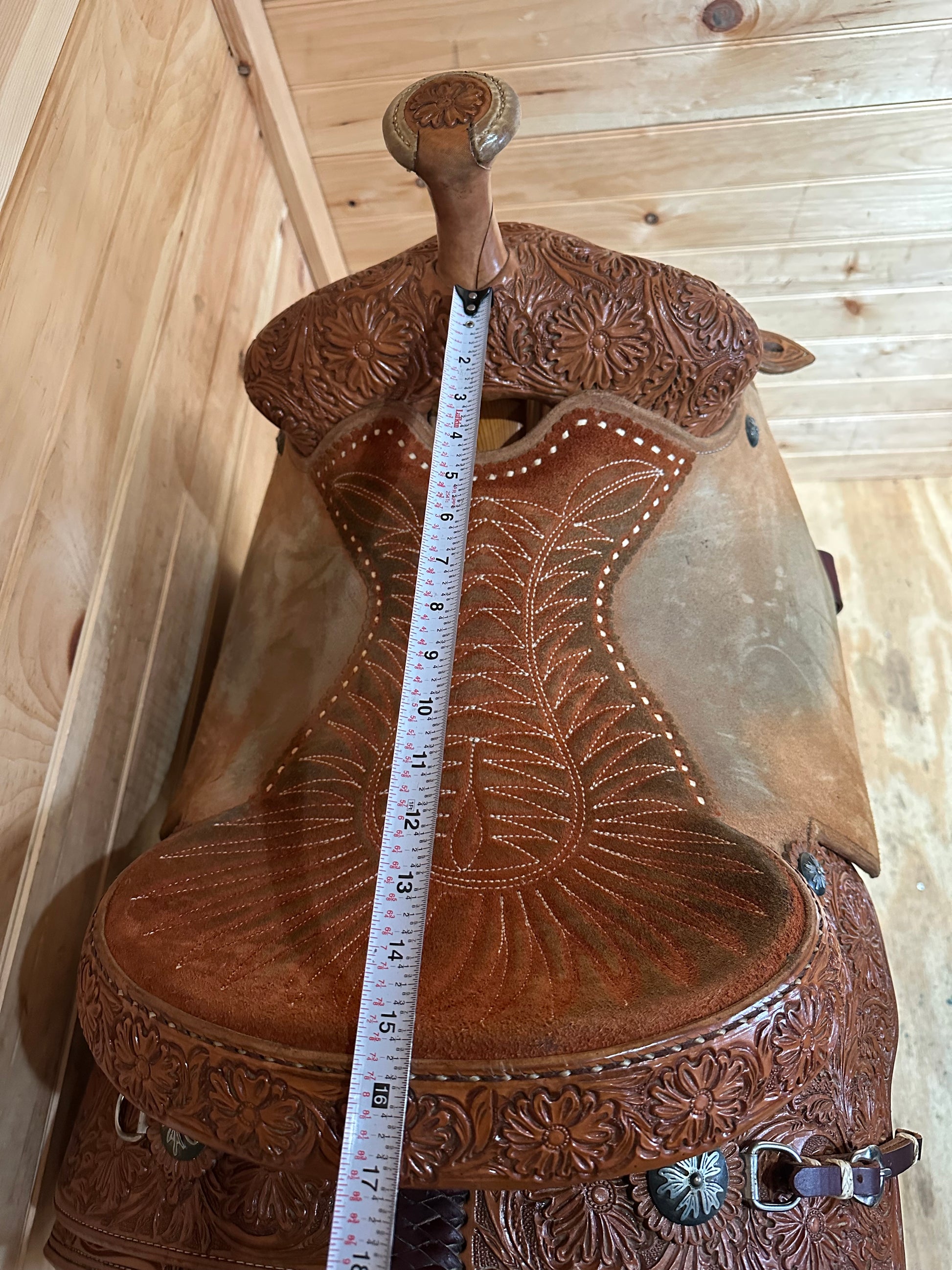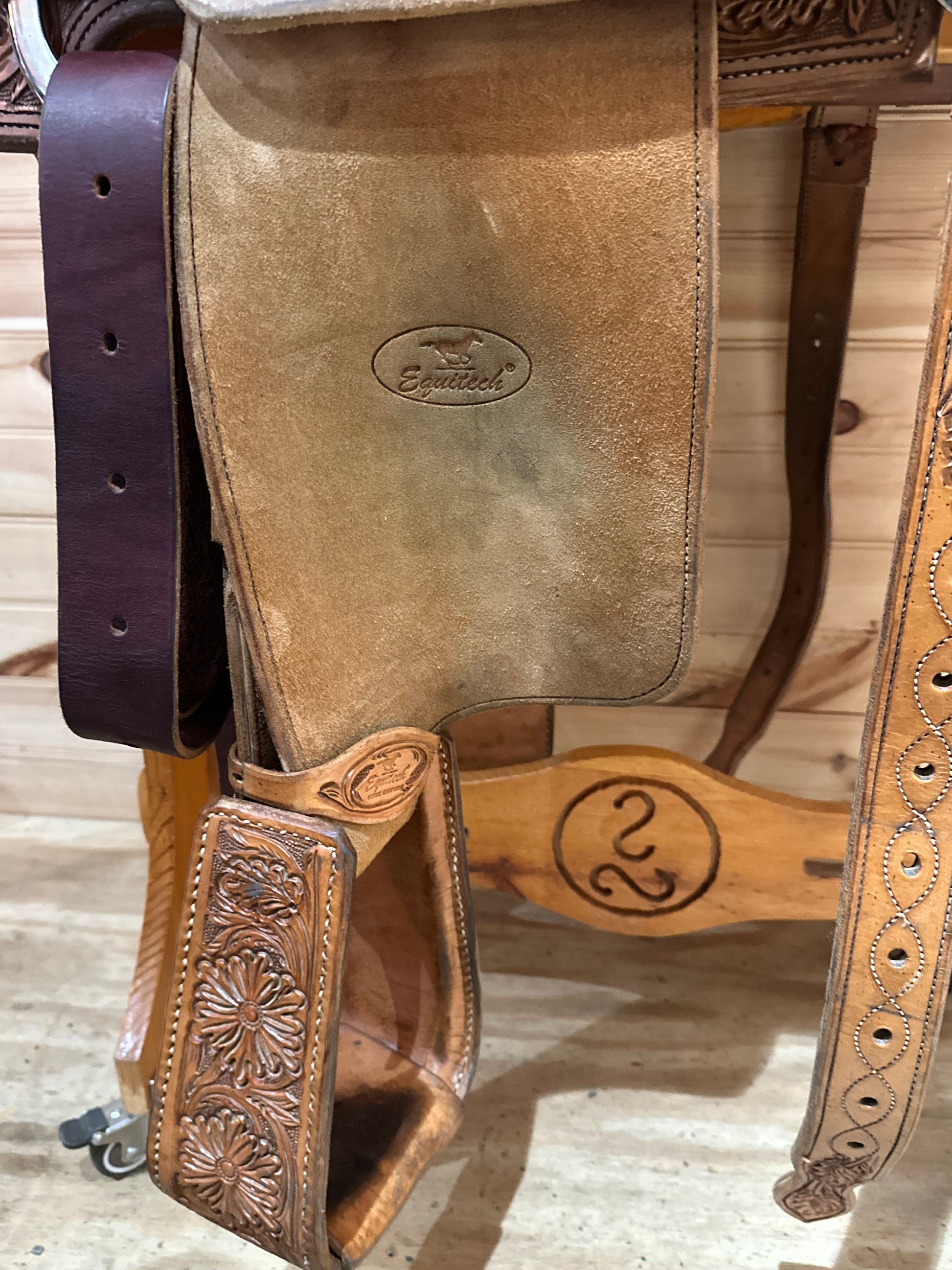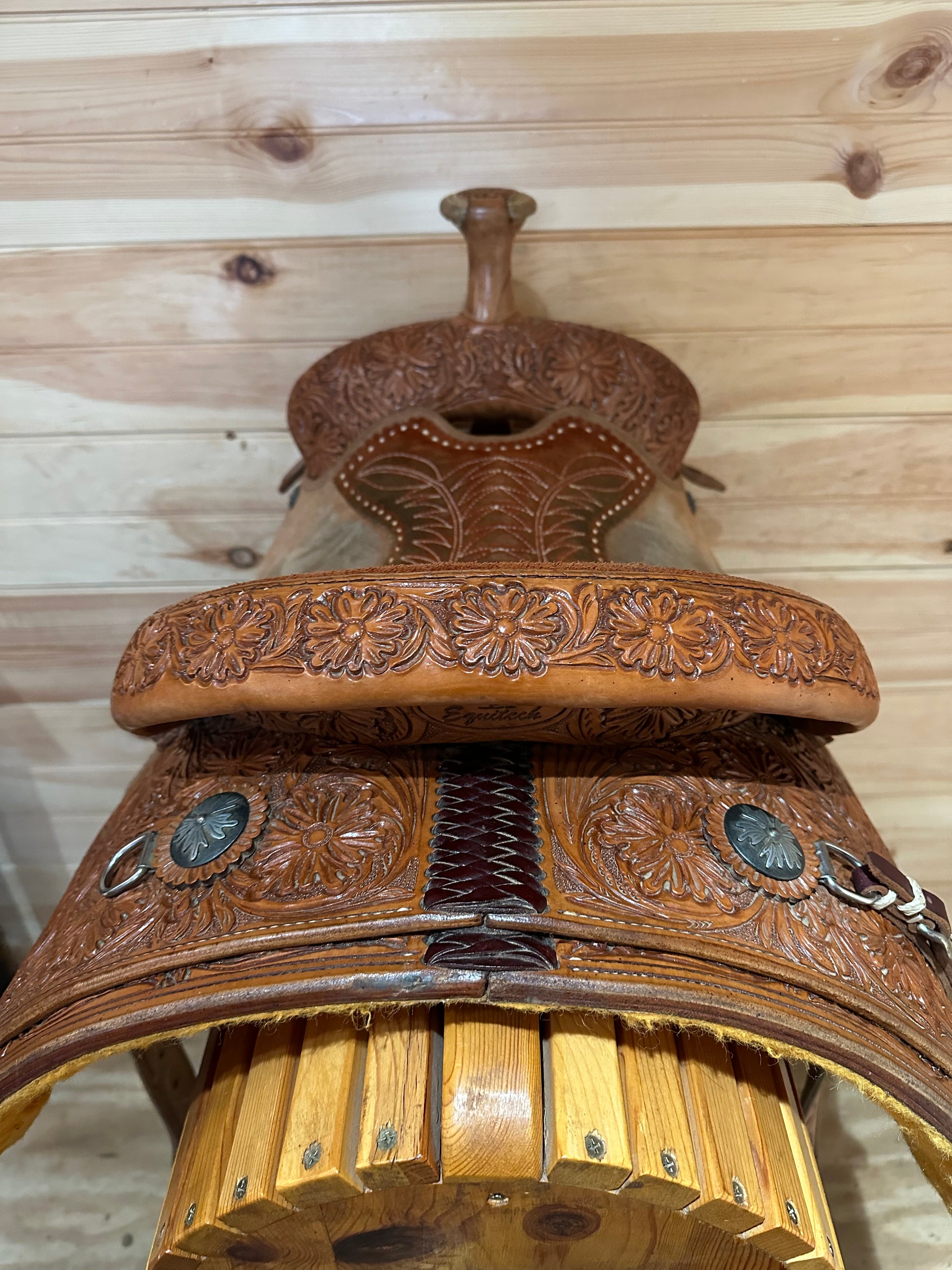 Features: Stunning floral tooled skirt, cantle, and pommel, Rough out jockey and fenders, Stitched suede seat, Stout Roper horn and Stirrups, Includes complete rear cinch and Equitech Breast Collar