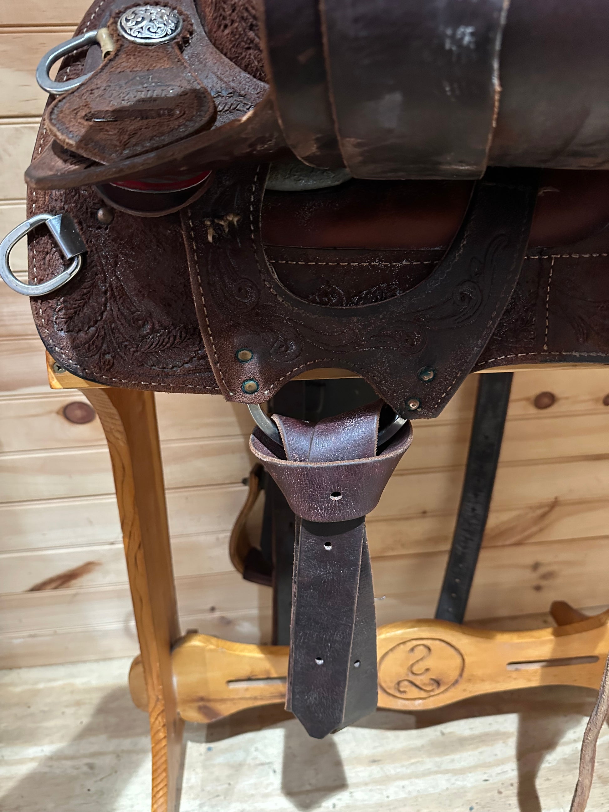 Condition: Excellent used condition. Includes latigo and off-billet and complete rear cinch. Left stirrup has cosmetic corner wood chip.