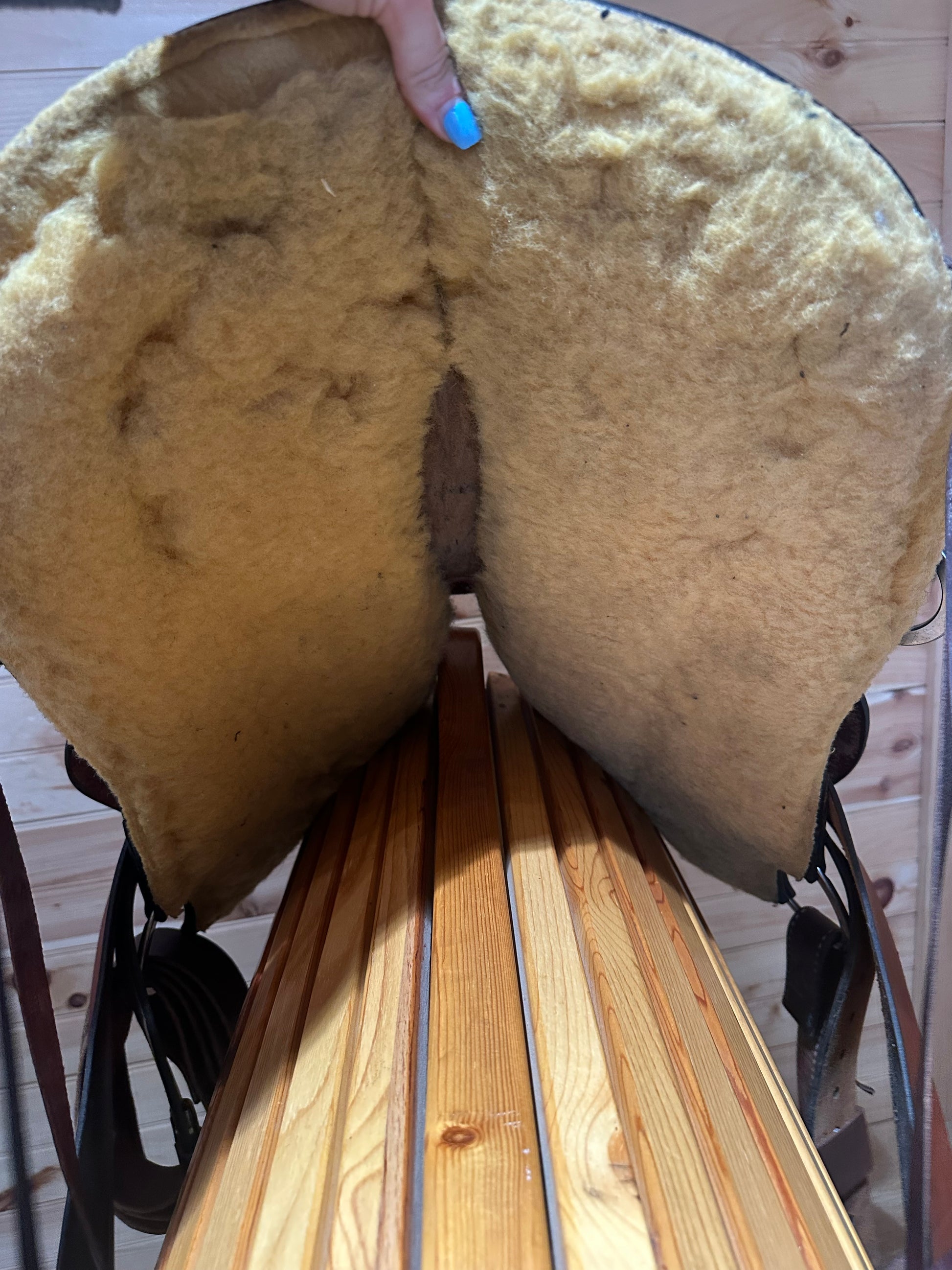 Features: Beautiful, clean endurance saddle. Supple leather. Shoulder flare to allow freedom of shoulder movement in the gaited horses. Smooth padded seat. Saddle strings. Round skirt
