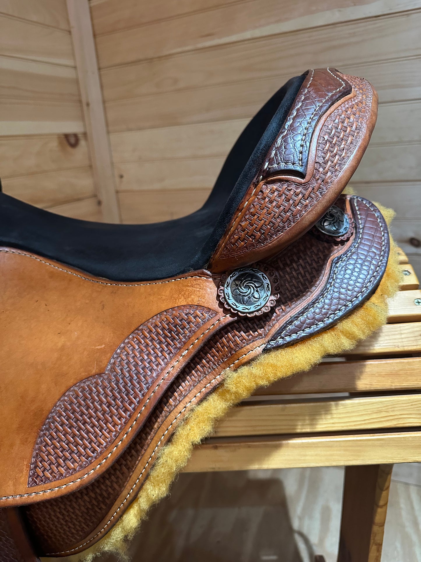 17” Len Brown’s Custom Black Mesa Pocket Racer Barrel Western Saddle