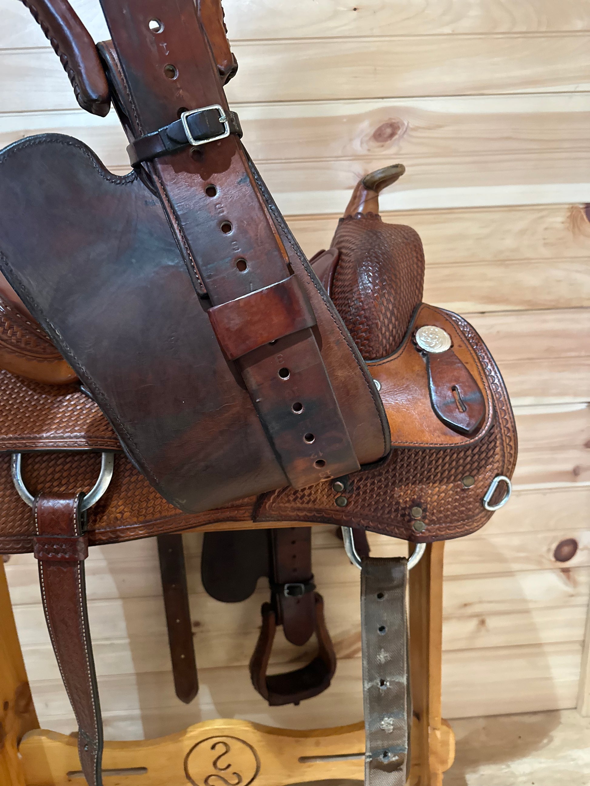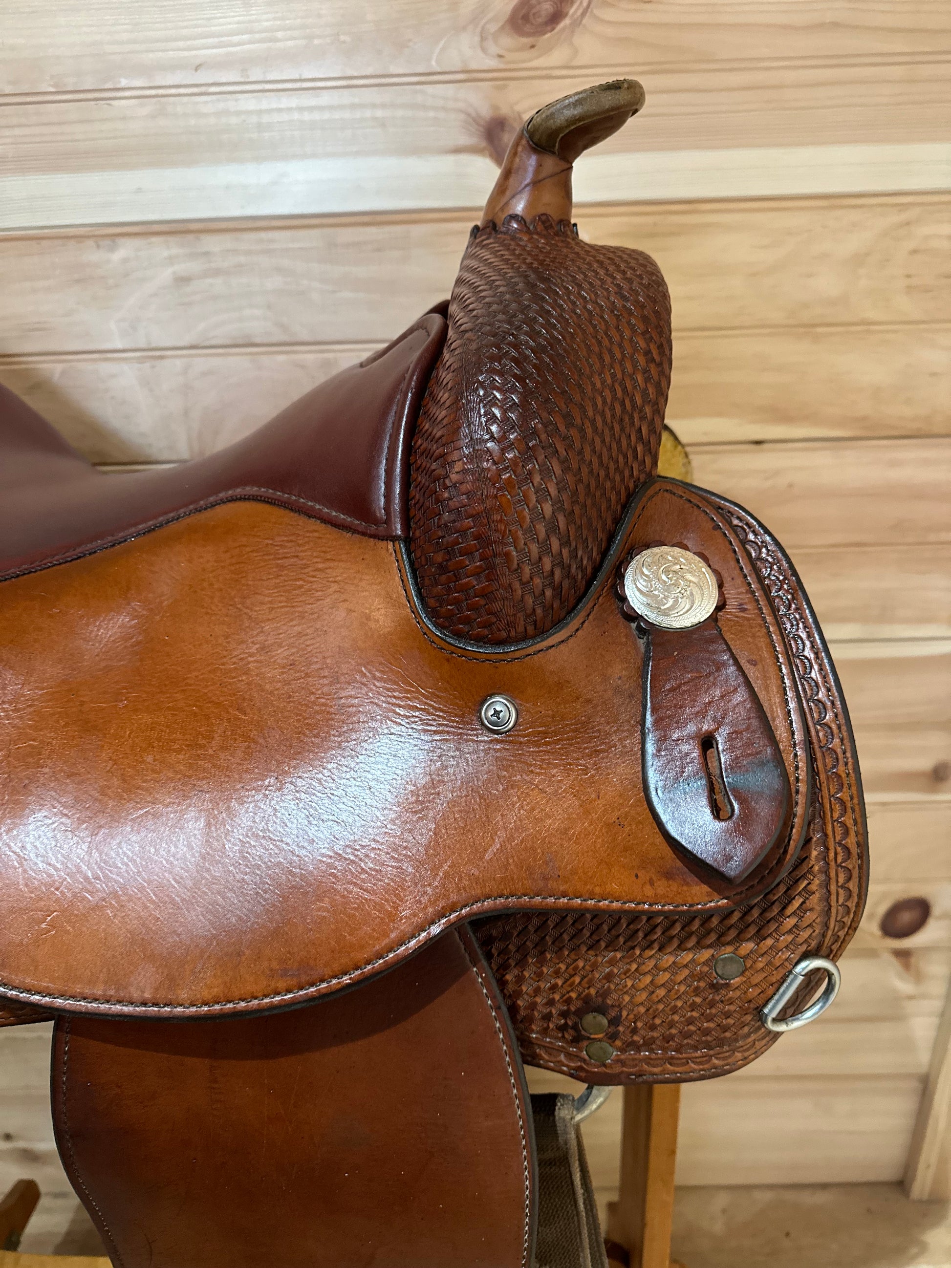 Features: Beautiful medium oil Reiner with basket weave tooling accents, softee leather for a broken in feel, smooth grain out seat, silver conchos.