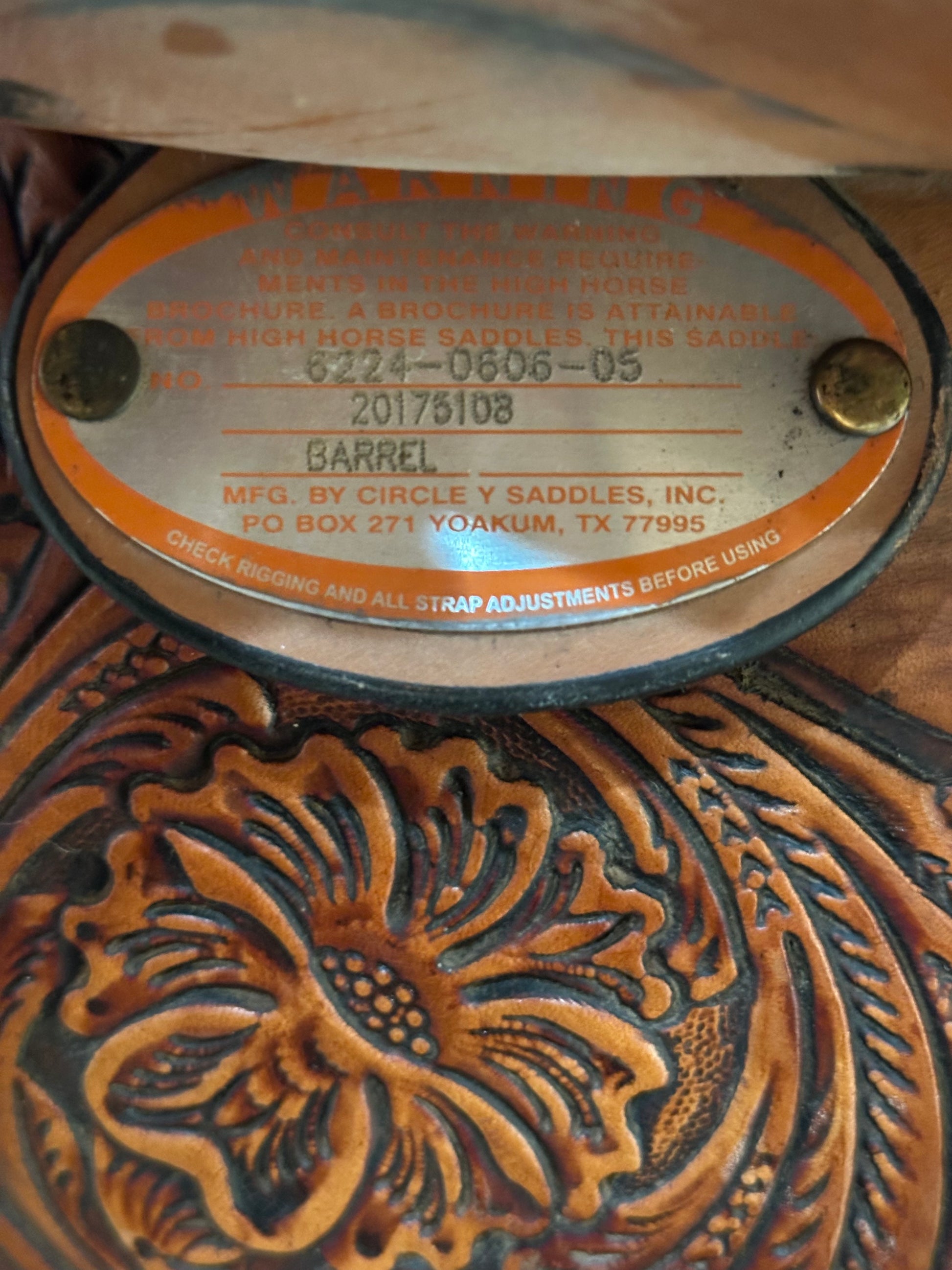 16” Circle Y High Horse Jewel Western Barrel Saddle Model 6224 (2017)