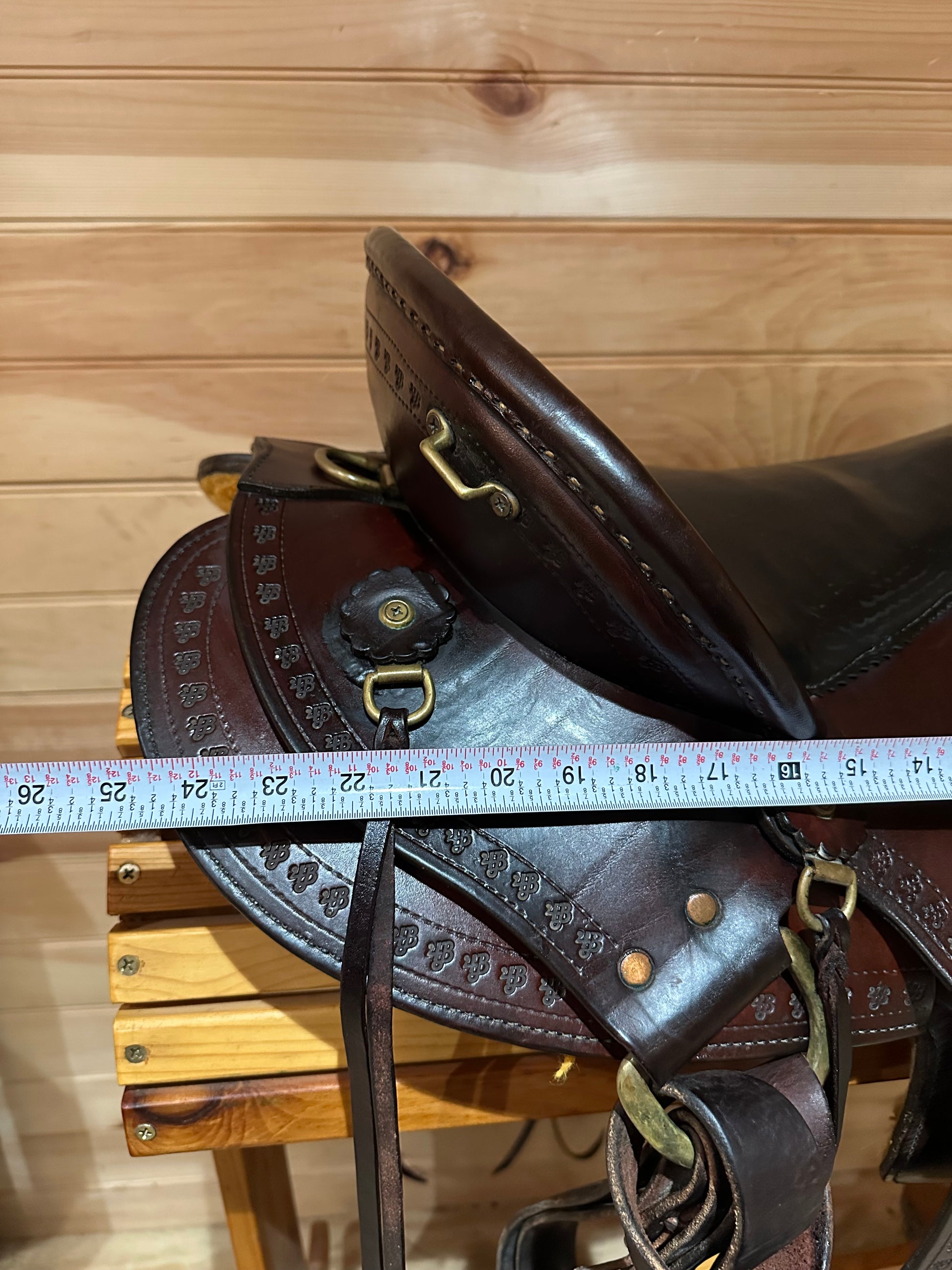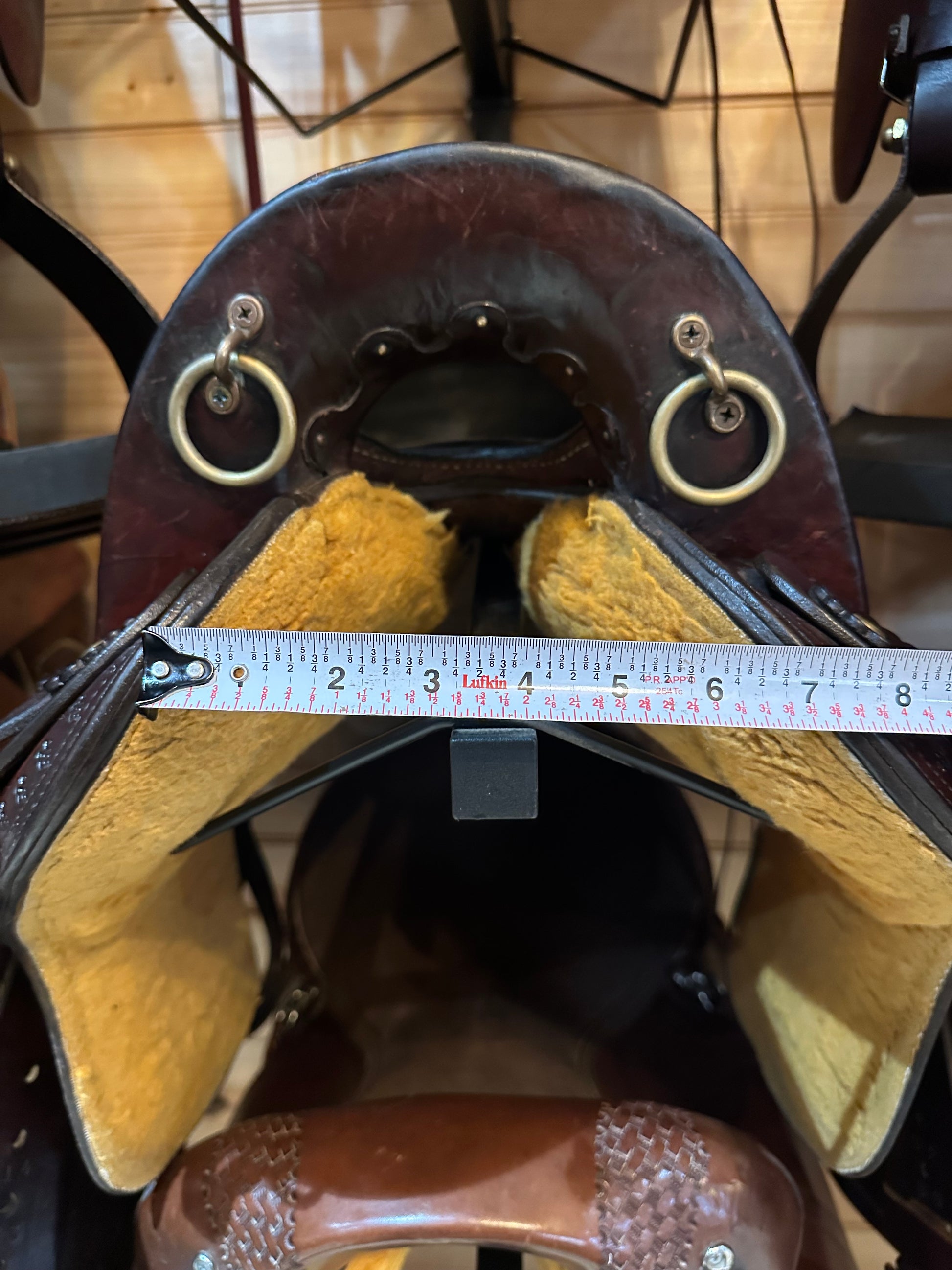 Features: Dark oil leather with classic Imus 4B bordered tooling, brass hardware, Supracore padded seat, high pommel for wither clearance, western fenders, leather wrapped stirrups, center fire rigging option with rear dees, saddle strings