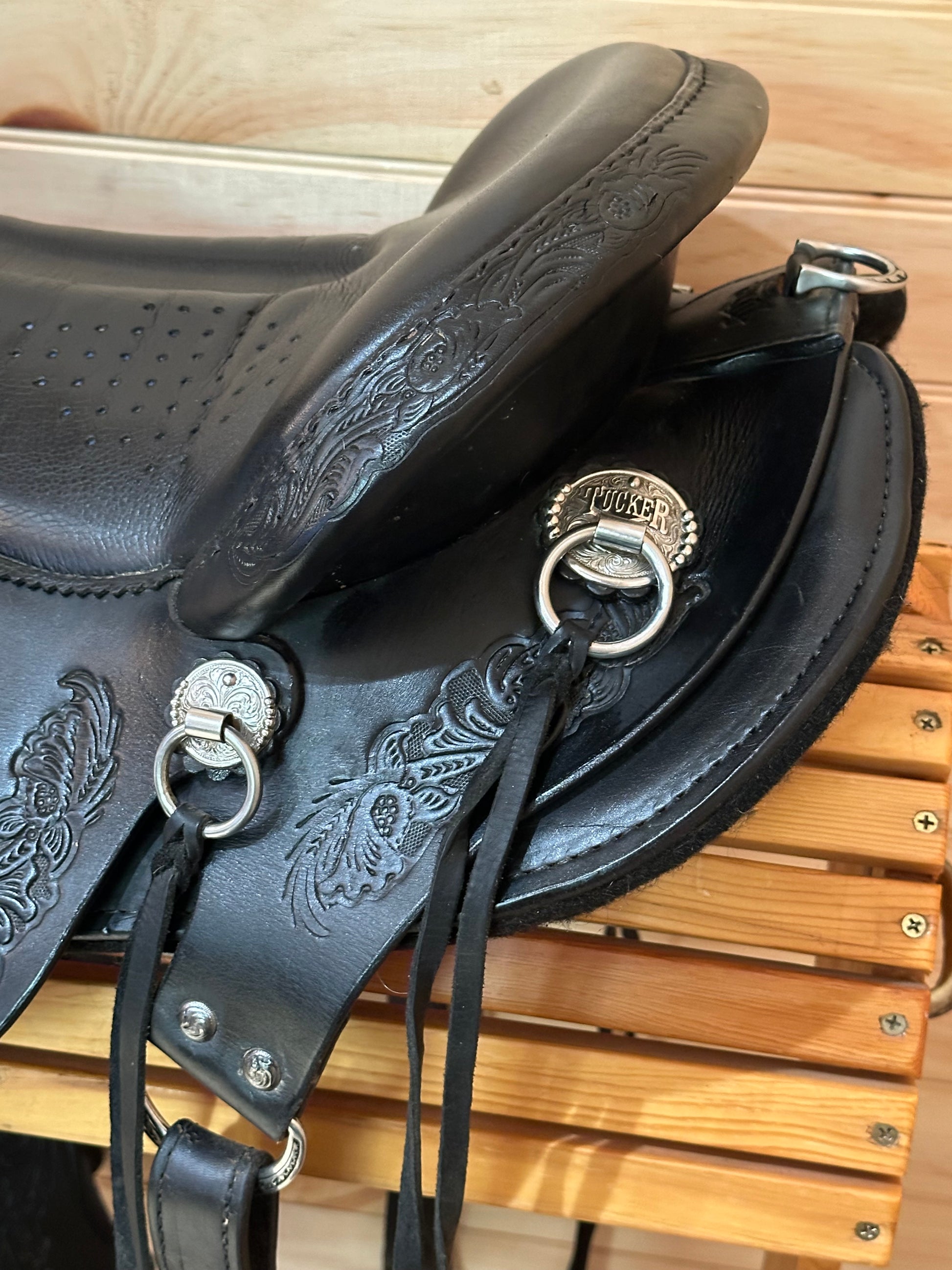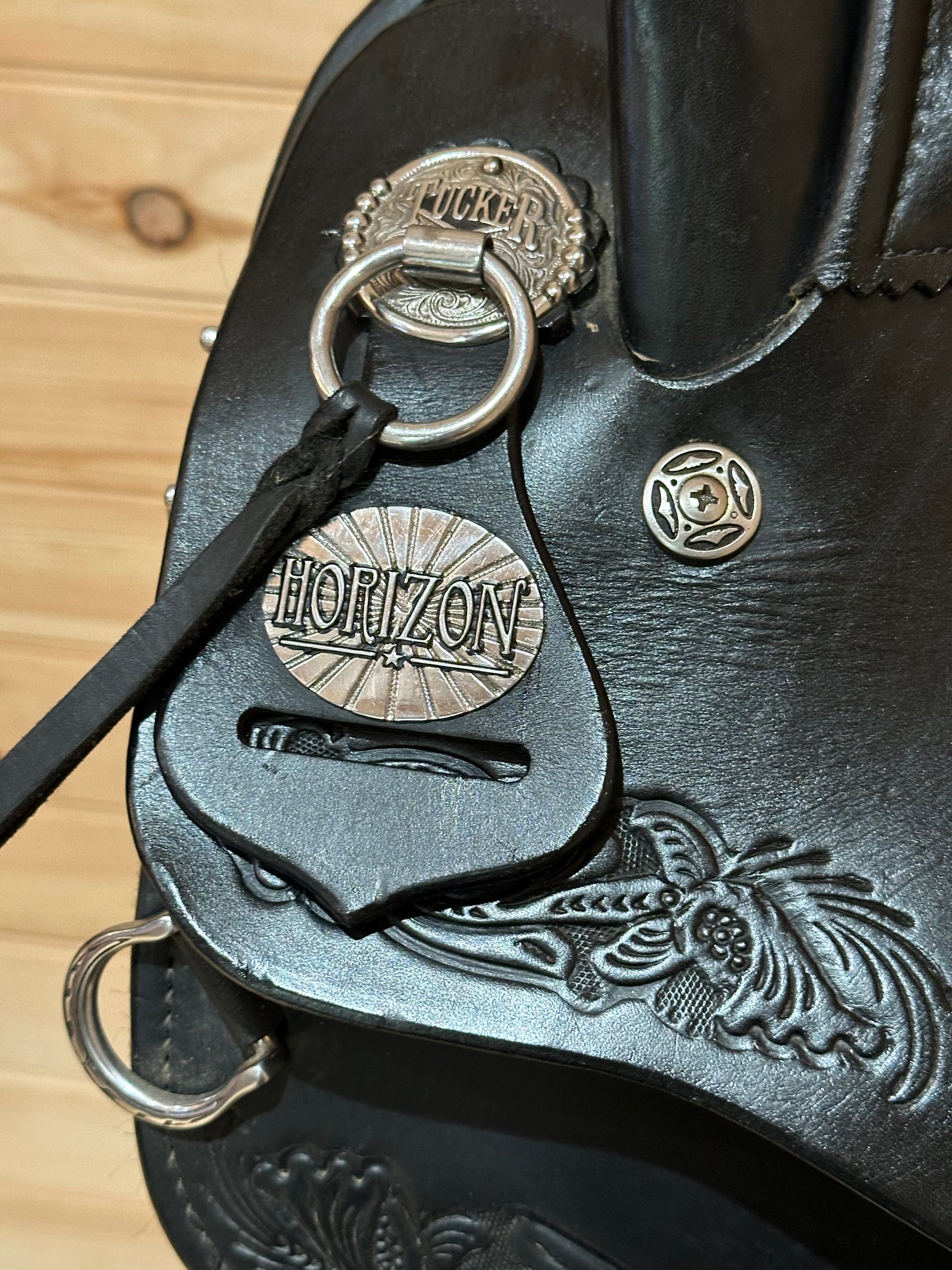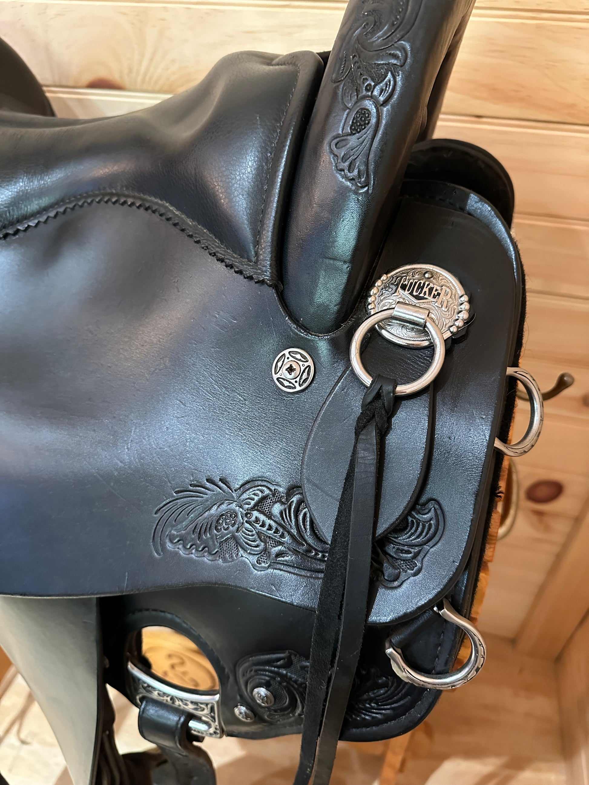 - Hardware: Chrome with engraved Tucker logo conchos and rings