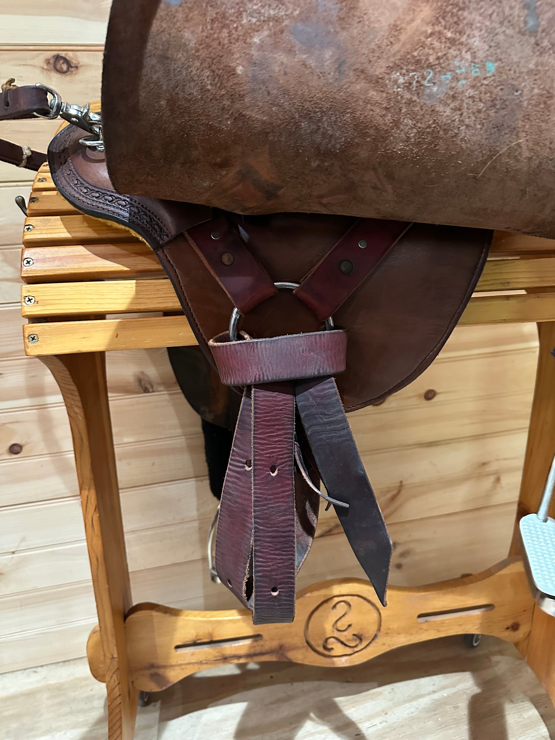 Condition: Great used condition. Includes latigo and off-billet. Stirrup irons are brand new.