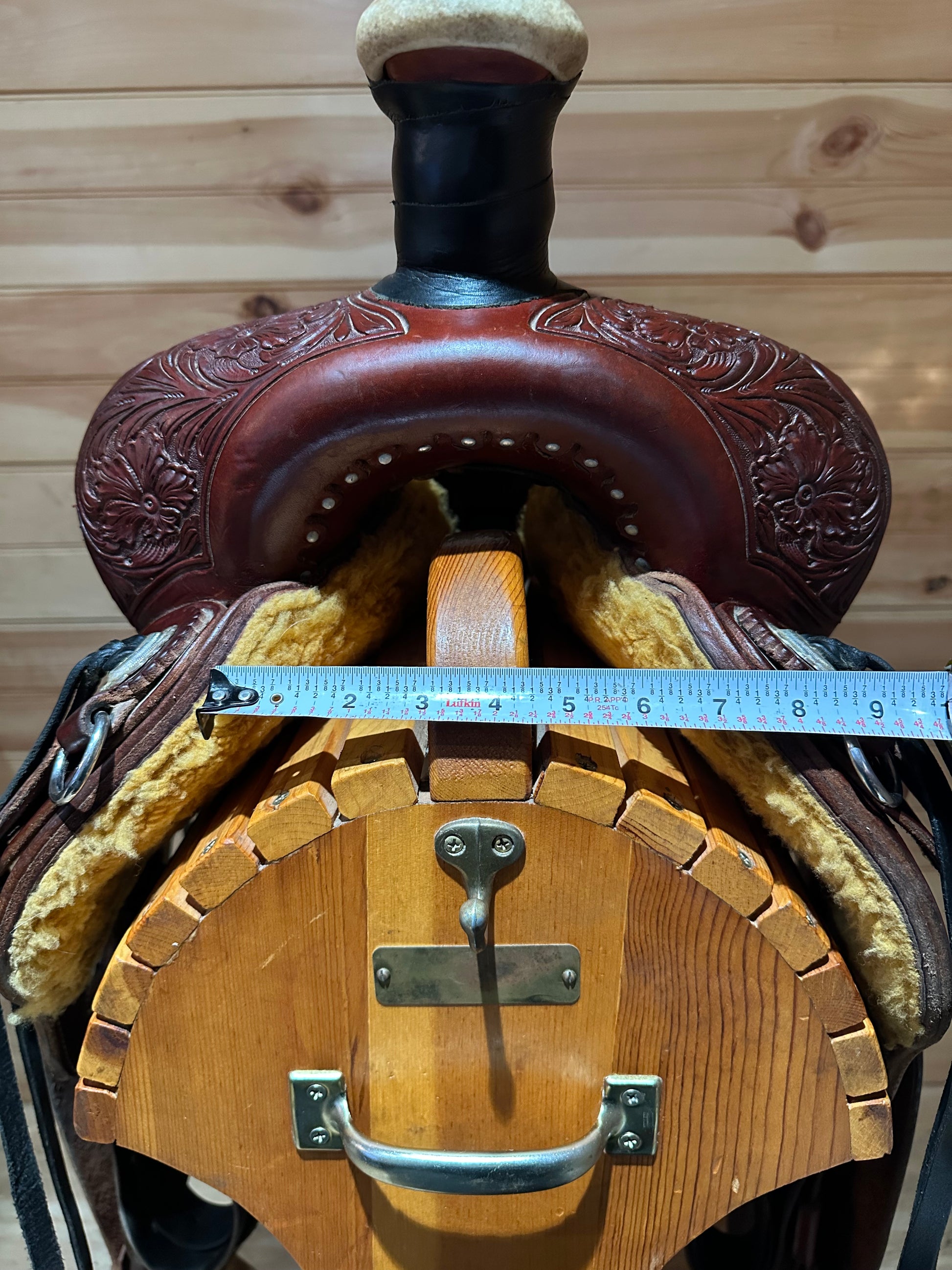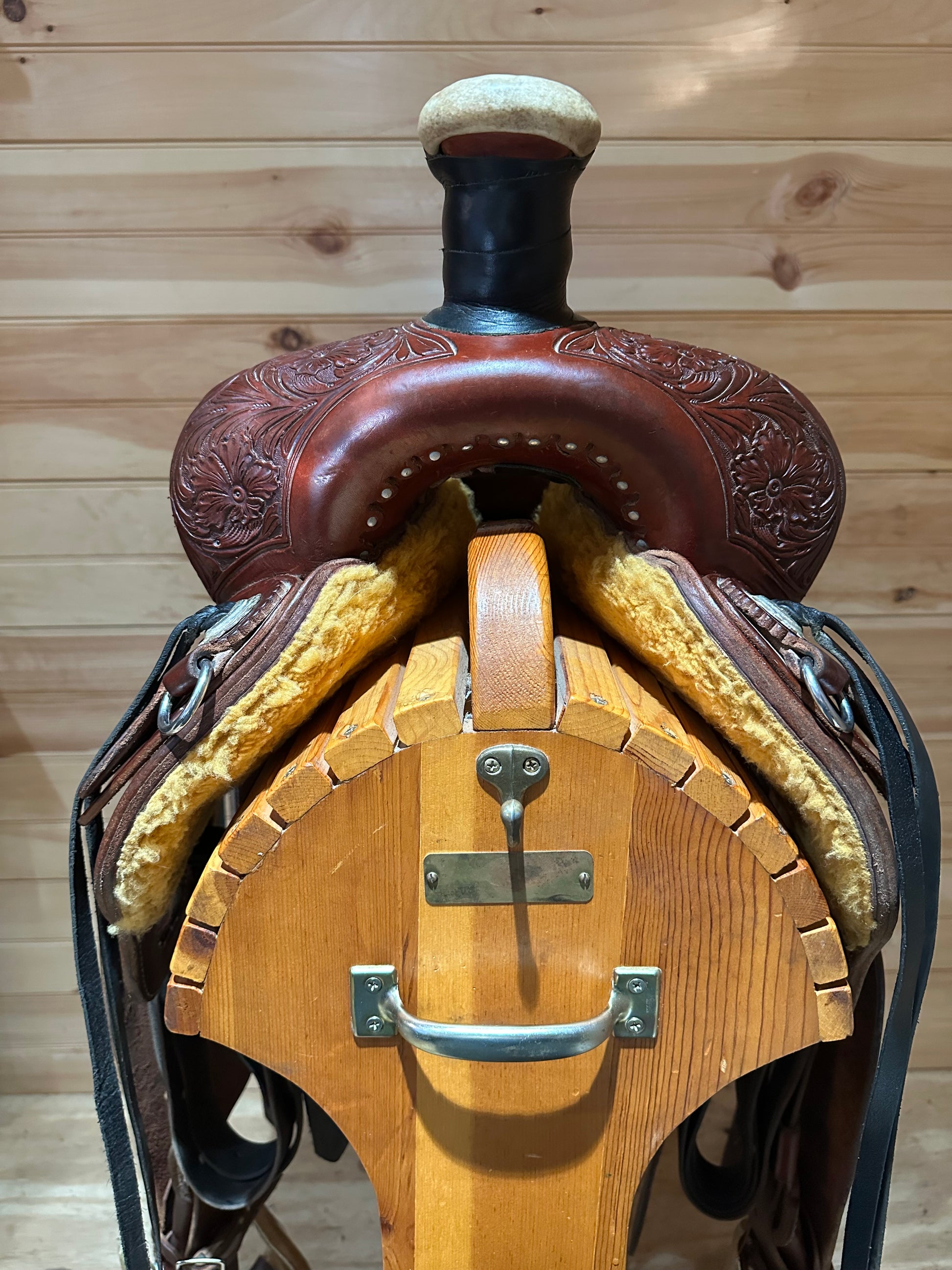 Flank Cinch: Tooled and stitched billets with 2½" wide cinch